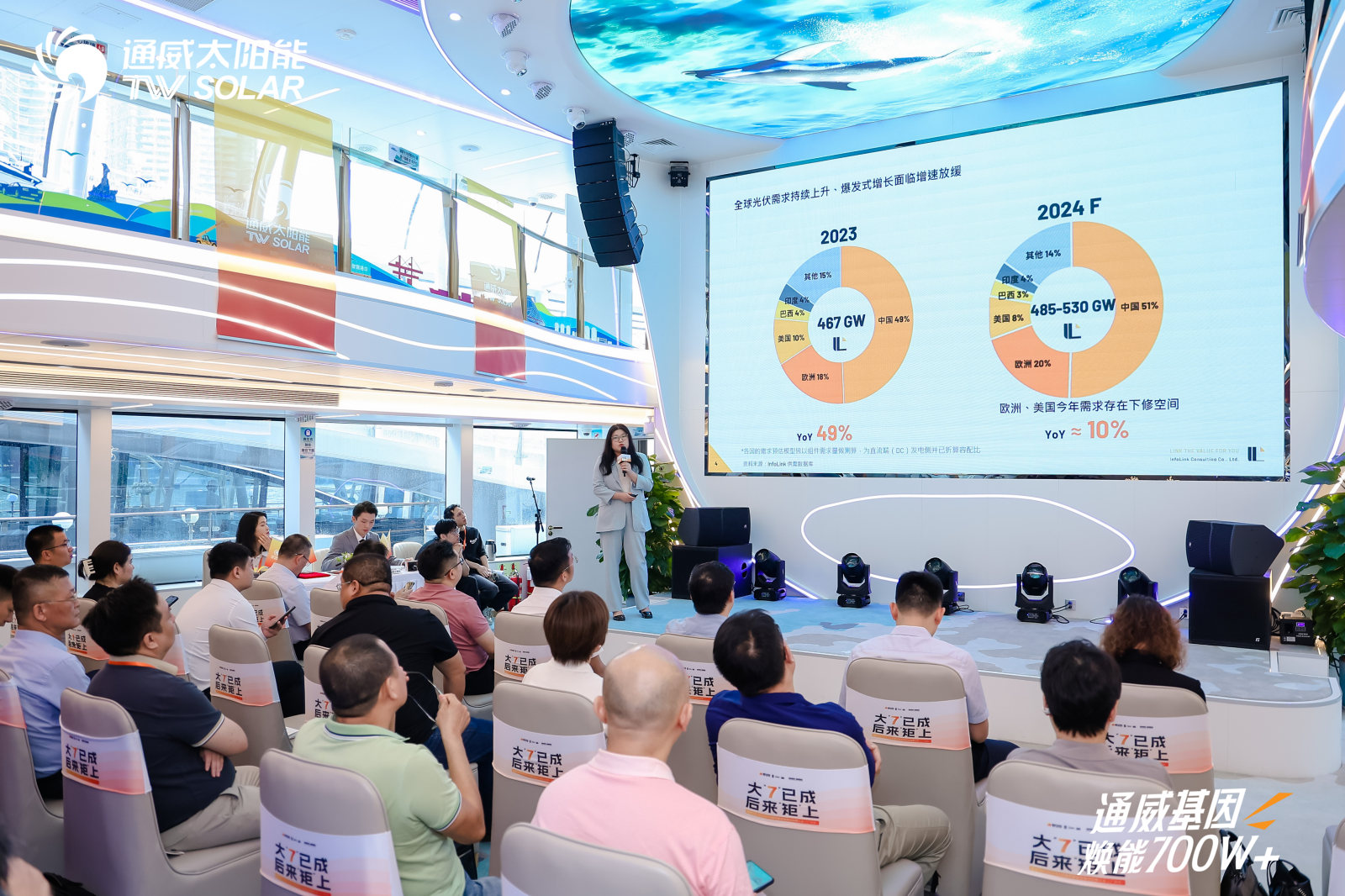 游輪“會(huì)客廳”:別開生面的游輪場(chǎng)地選擇,為與會(huì)者提供了一個(gè)獨(dú)特而舒適的交流環(huán)境,同時(shí)也象征著通威在光伏領(lǐng)域不斷探索和創(chuàng)新的決心。