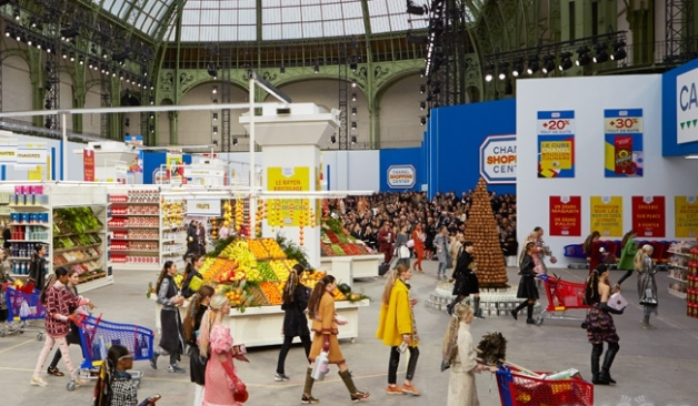 主題時,2014巴黎時裝周上,香奈兒卻給了大家一個大驚喜。這一次,香奈兒把秀場布置成了巨大的超市