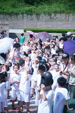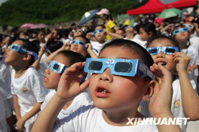 近千名小朋友帶著自制的觀(guān)測(cè)鏡齊聚廣場(chǎng)觀(guān)看日食奇觀(guān)
