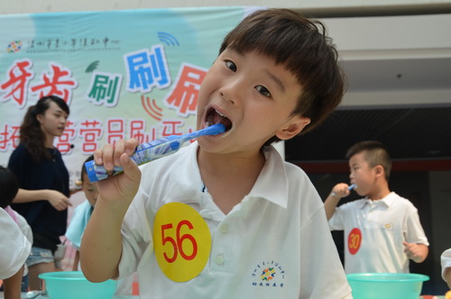 為了促進(jìn)營(yíng)員口腔健康,提升營(yíng)員的口腔保健知識(shí),養(yǎng)成正確刷牙的好習(xí)慣,市青少年活動(dòng)中心幼教拓展營(yíng)在9月20日全國(guó)愛(ài)牙日舉辦了一場(chǎng)別開(kāi)生面的刷牙比賽,活動(dòng)寓教于樂(lè),活動(dòng)策劃,贏得了家長(zhǎng)及孩子們的熱烈歡迎。
