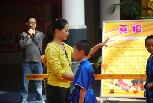 一會(huì)的功夫,孩子們都已經(jīng)出汗了,稍事休息后,黃老師帶著學(xué)員們復(fù)習(xí)了上次培訓(xùn)課學(xué)過的一些拳法套路,并一個(gè)個(gè)的加以耐心的指正,看到同學(xué)們掌握的還不錯(cuò),黃老師高興的落出了笑容,并一邊示范一邊繼續(xù)教同學(xué)們一些新的課程。兩節(jié)課時(shí)間很快的就過去了,同學(xué)們哪個(gè)也沒有想到過放棄,有個(gè)大眼睛的小女孩說,我以前天天生病,自從練習(xí)武術(shù)之后,就再也沒有生病了。有個(gè)男孩子說,有時(shí)候練習(xí)的時(shí)候全身都很痛,但是一想到如果放棄了,以前吃的苦全都白學(xué)了,就又堅(jiān)持下去了。