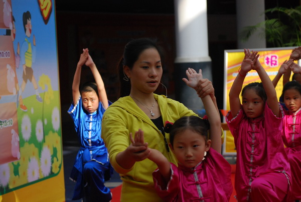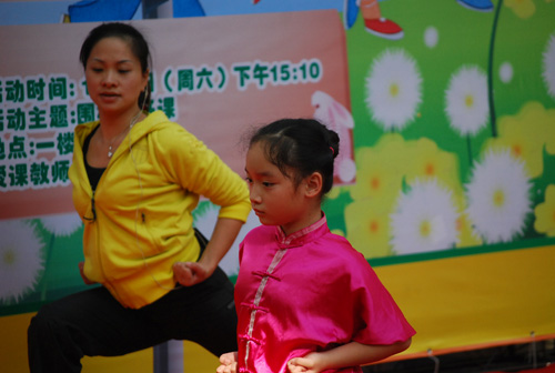 11月7日下午,中心武術(shù)兼職教師、全國(guó)錦標(biāo)賽冠軍黃劍婷老師帶領(lǐng)武術(shù)初級(jí)班的學(xué)員,在中心大廳進(jìn)行了武術(shù)培訓(xùn)項(xiàng)目的公開展示活動(dòng)