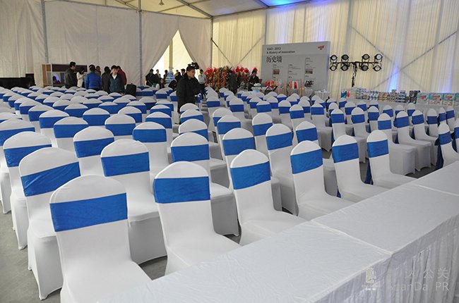 結(jié)合著此次活動的一個特殊性,我們善達人精心的把此次活動的重點放在了廠區(qū)內(nèi),工程部的同仁在時間緊,任務重的情況下,高標準的搭建了1000平方米的室外會議場地,下午5:30整,一段充滿激情的開場視頻中,在名嘴陳丹女士主持下,大王紙業(yè)開業(yè)慶典晚宴拉開了帷幕!