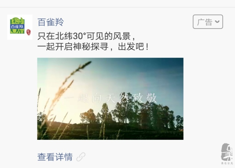 為推廣天然理念,百雀羚這次用一條“正兒八經(jīng)”的宣傳片一舉占領(lǐng)了“北緯30°”草本產(chǎn)地。而我們的任務(wù)不僅是“守護(hù)天然了解一下”,還要讓各位路轉(zhuǎn)粉,粉轉(zhuǎn)深粉,加入 “這里的天然我們來守護(hù)”陣線聯(lián)盟!