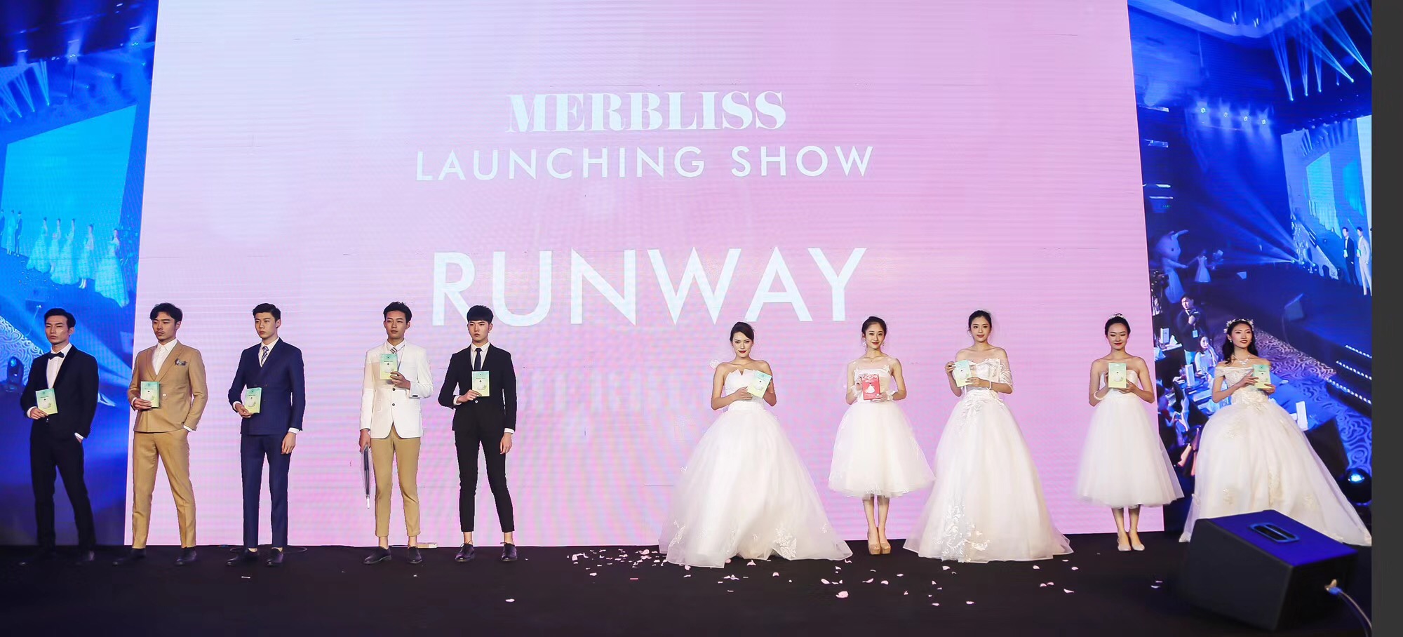 伴隨著一段浪漫甜蜜的婚禮樂奏起,模特踏上舞臺新品秀