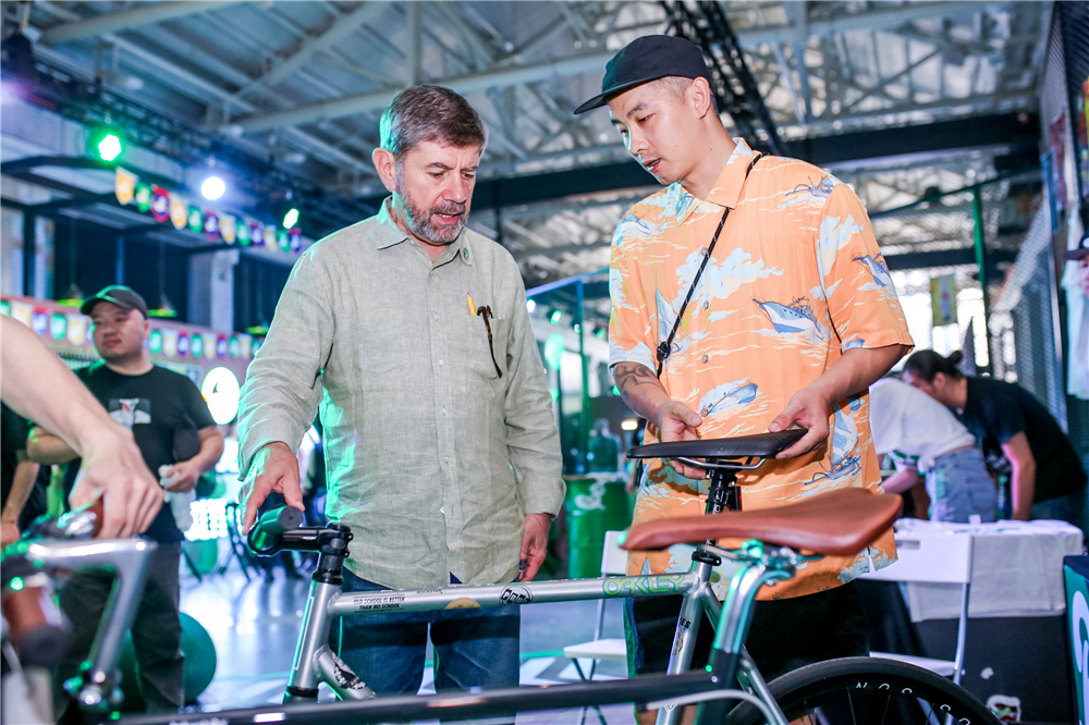 Rideal負(fù)責(zé)人為史蒂夫·欣迪(Steve Hindy)講解單車
