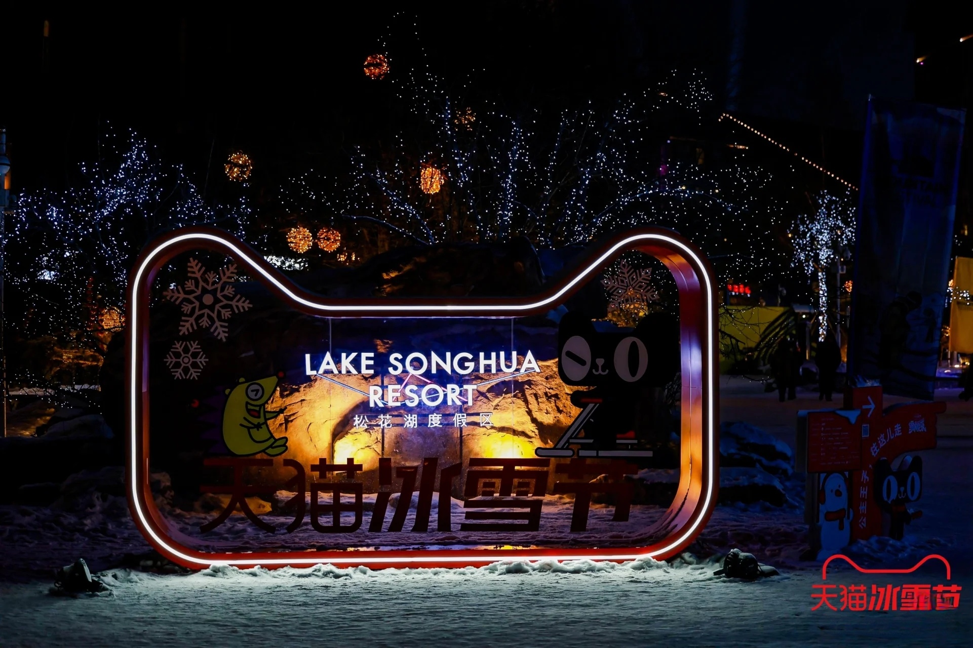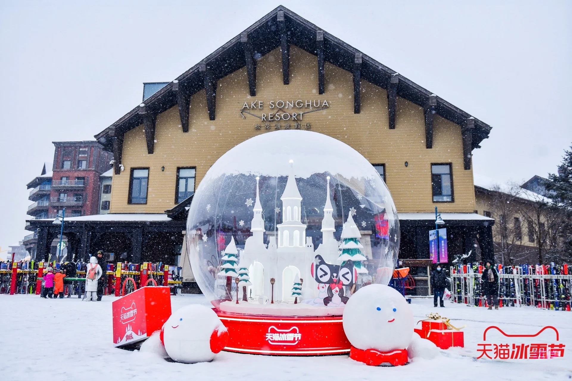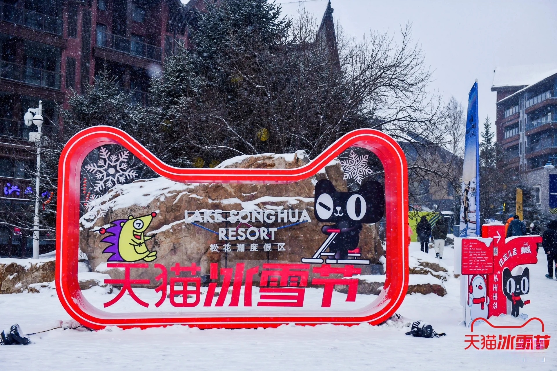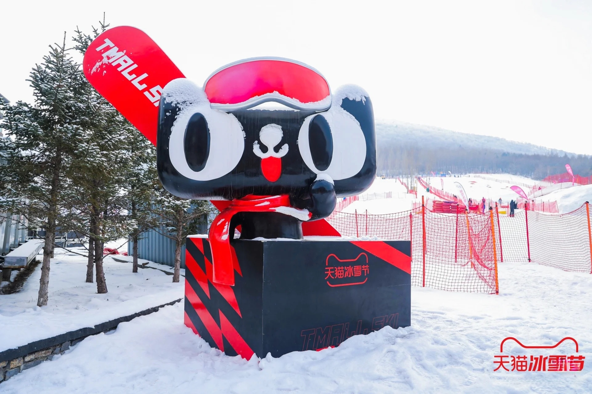 亮點(diǎn)描述:天貓冰雪節(jié)在吉林市松花湖滑雪度假區(qū)設(shè)置了巨型顯眼貓頭裝置,這一標(biāo)志性的設(shè)計(jì)不僅吸引了大量游客的目光,也成為了現(xiàn)場拍照打卡的熱門地點(diǎn)。貓頭裝置以冰雪為材料,結(jié)合現(xiàn)代藝術(shù)手法,展現(xiàn)了天貓品牌的獨(dú)特魅力。