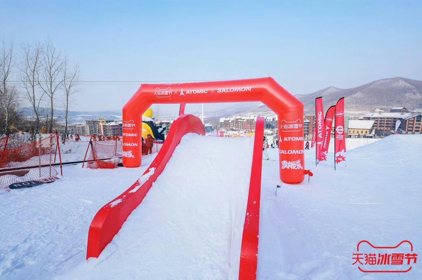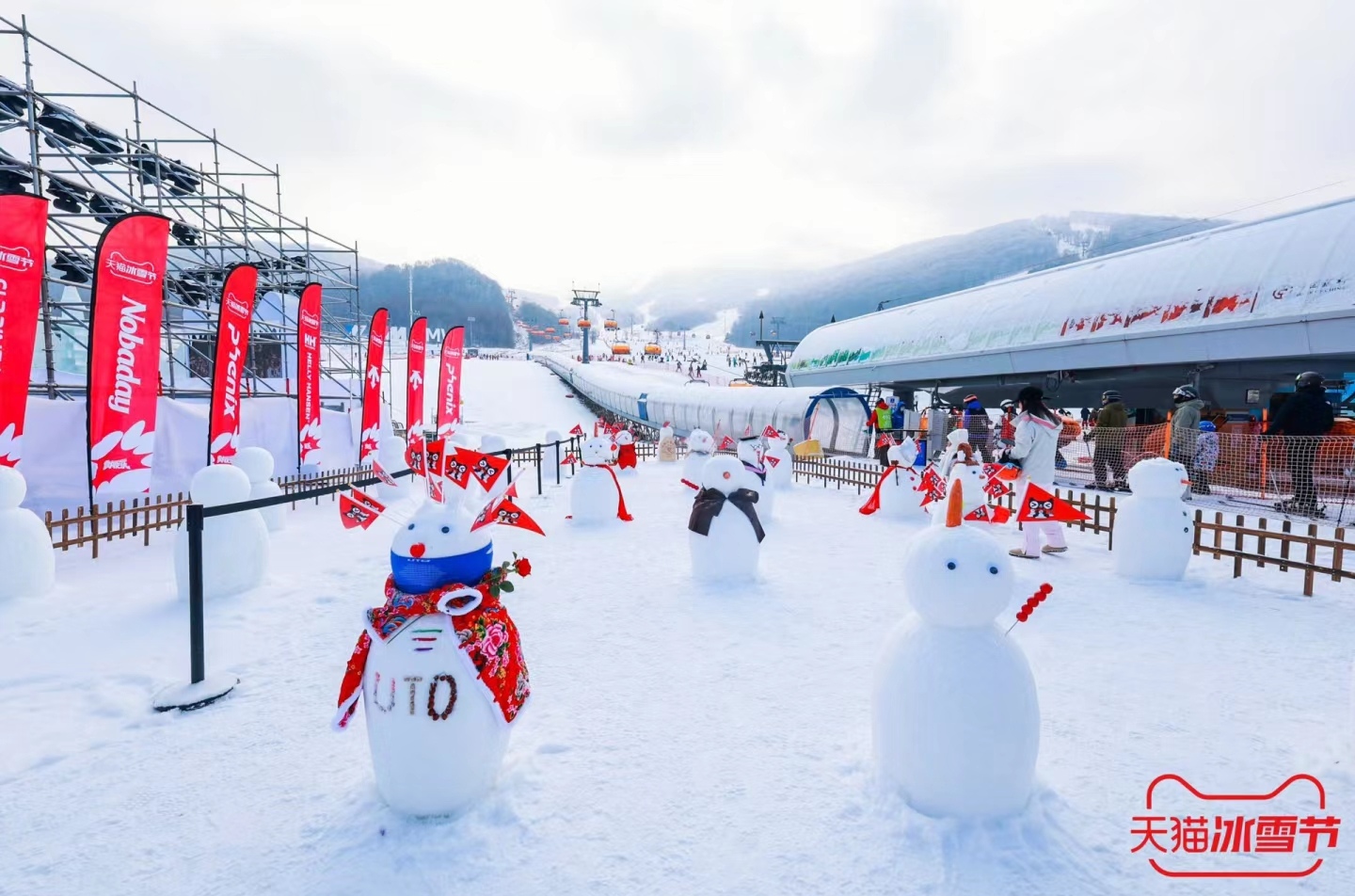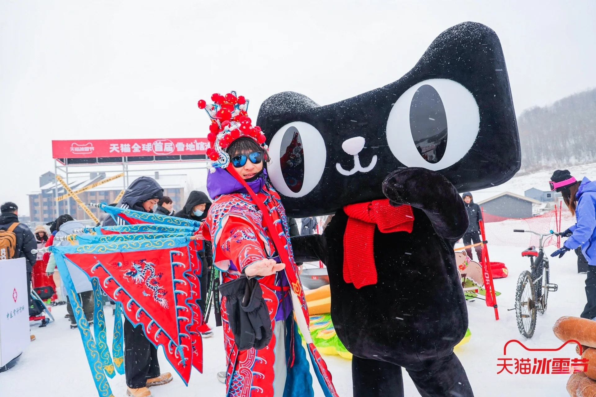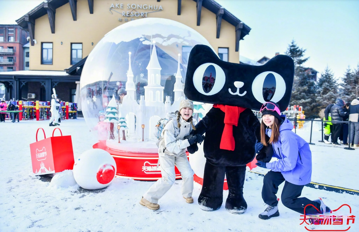 亮點(diǎn)描述:天貓冰雪節(jié)在吉林市松花湖滑雪度假區(qū)設(shè)置了巨型顯眼貓頭裝置,這一標(biāo)志性的設(shè)計(jì)不僅吸引了大量游客的目光,也成為了現(xiàn)場拍照打卡的熱門地點(diǎn)。貓頭裝置以冰雪為材料,結(jié)合現(xiàn)代藝術(shù)手法,展現(xiàn)了天貓品牌的獨(dú)特魅力。