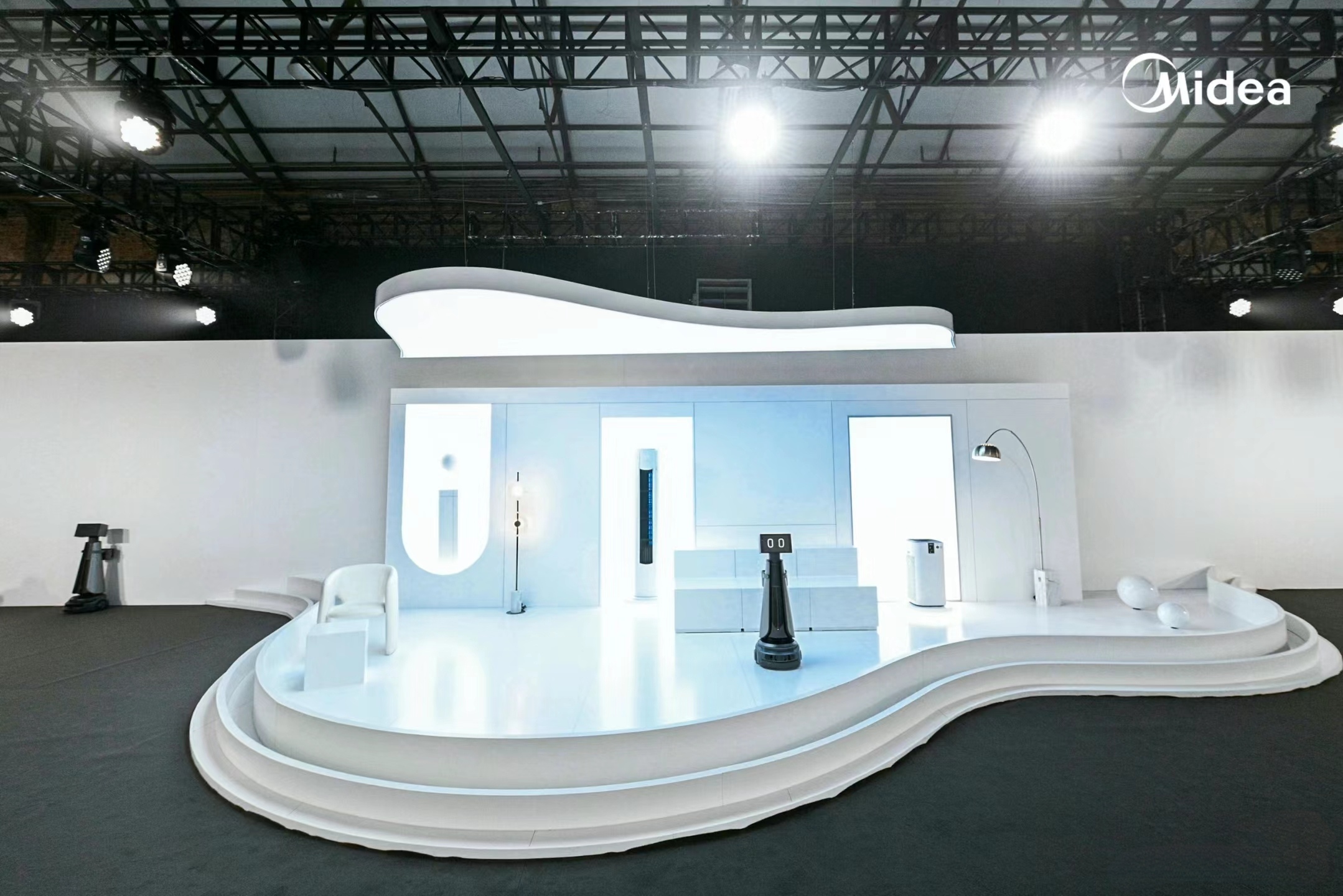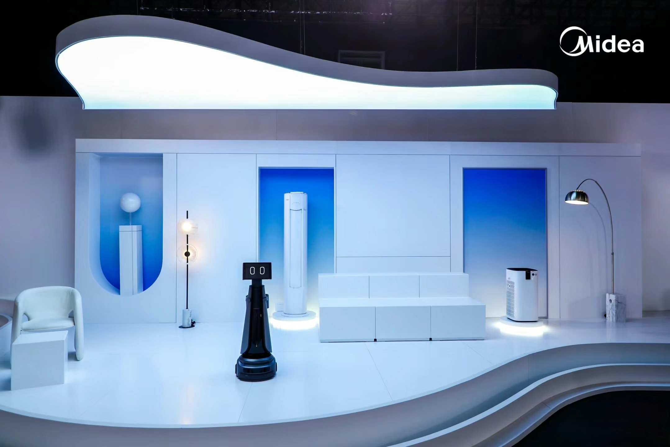 智能家居展示:通過(guò)現(xiàn)場(chǎng)智能家居的展示,如美的W12掃地機(jī)器人等,體現(xiàn)美的集團(tuán)在AIoT技術(shù)方面的應(yīng)用和創(chuàng)新。