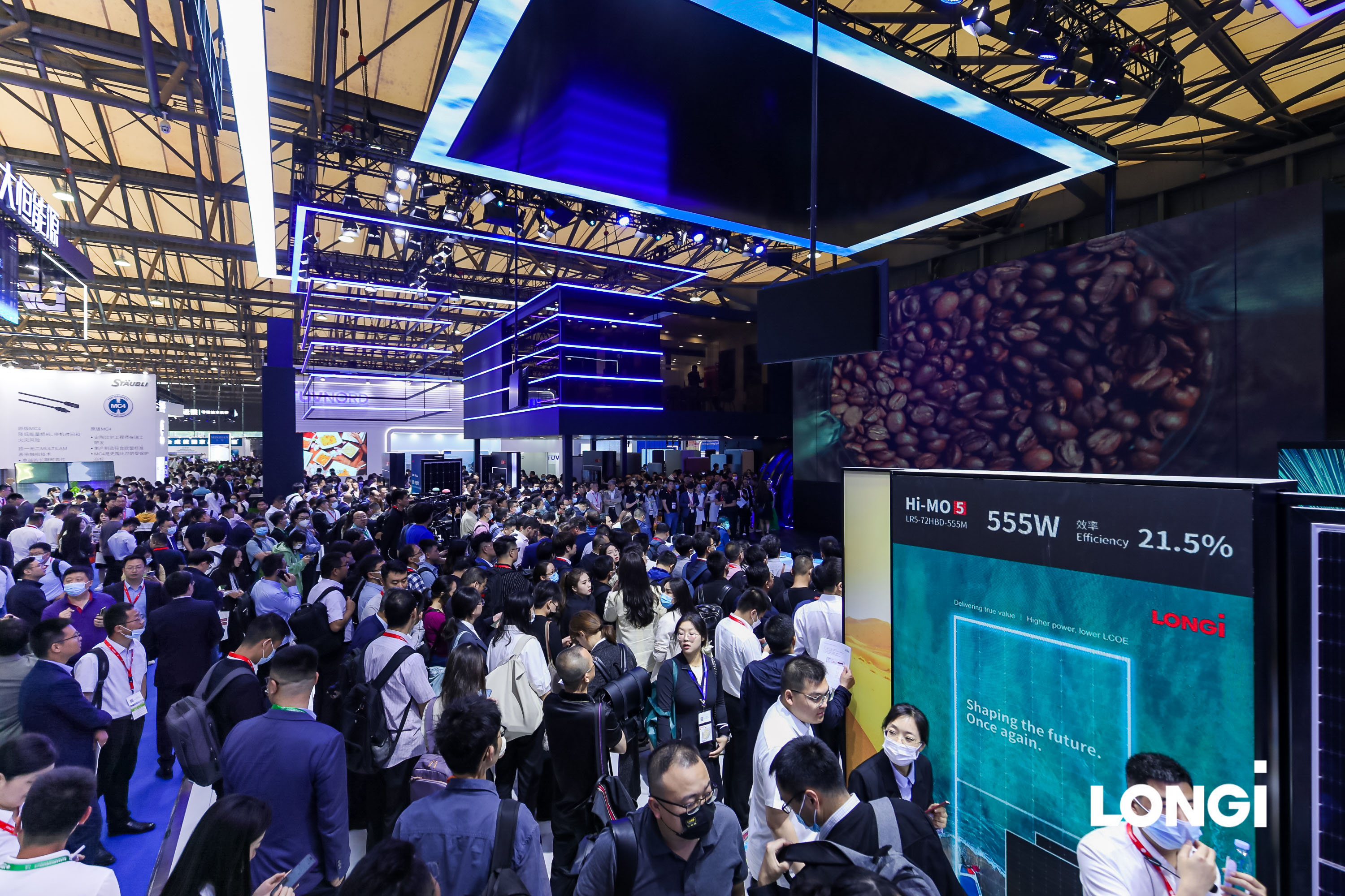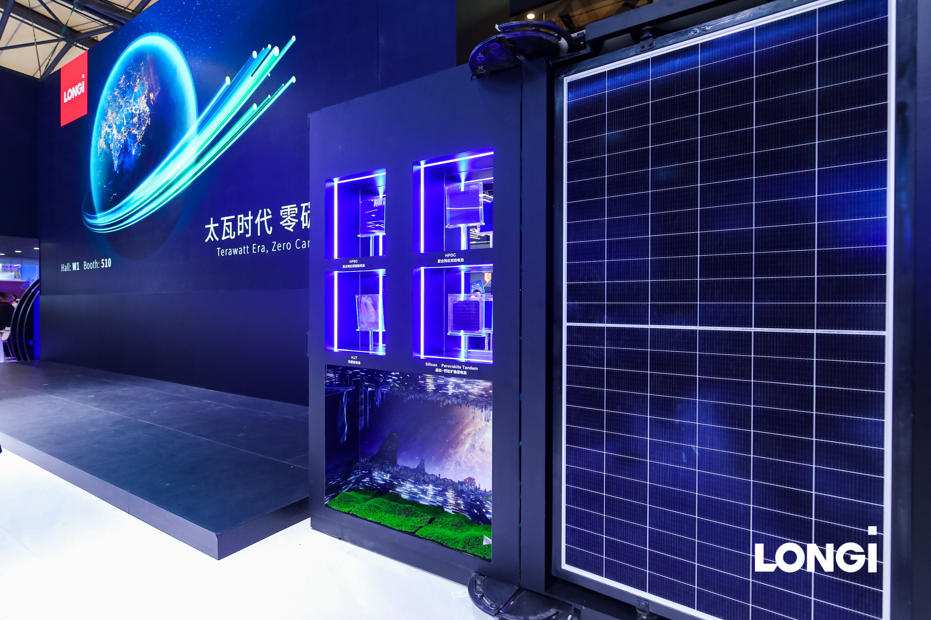 在隆基展臺區(qū)完成新產(chǎn)品、新技術(shù)驚艷亮相。