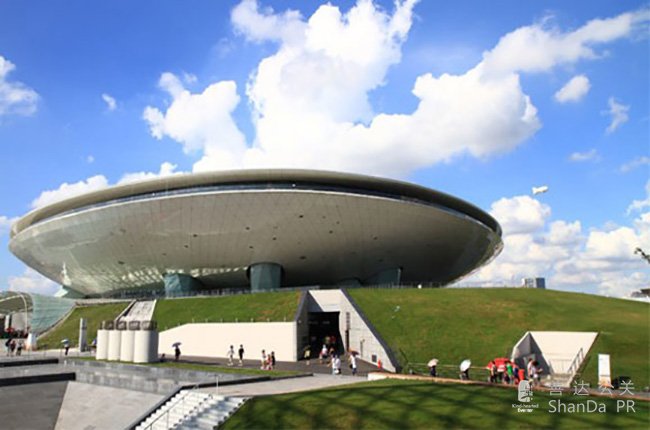梅賽德斯-奔馳文化中心造型呈飛碟狀,寓意著面向未來,昂揚向上的豪邁氣概,標(biāo)志著偉大的時代以及對未來的美好憧憬,不同角度和不同空間會呈現(xiàn)出不同形態(tài)。白天如“時空飛梭”、似“藝海貝殼”;夜晚則夢幻迷離,恍如“浮游都市”。建筑以西北側(cè)盧浦大橋作為底景集中式布局,柔和的建筑形體融于濱江公園綠地之中;與世博慶典廣場有機結(jié)合、形態(tài)交融;與萬人慶典廣場室內(nèi)外互動、轉(zhuǎn)換與銜接;與西側(cè)的世博軸、世博中心和南側(cè)的中國館相呼應(yīng)、相協(xié)調(diào)。擁有一個18,000座的主場館,以及音樂俱樂部、電影院、溜冰場、餐廳、零售區(qū)域。梅賽德斯-奔馳文化中心作為2010年上海世博會最重要的永久性場館之一,在世博會期間將承擔(dān)各類大型演出和活動,滿足世博會大型文藝演出需求。