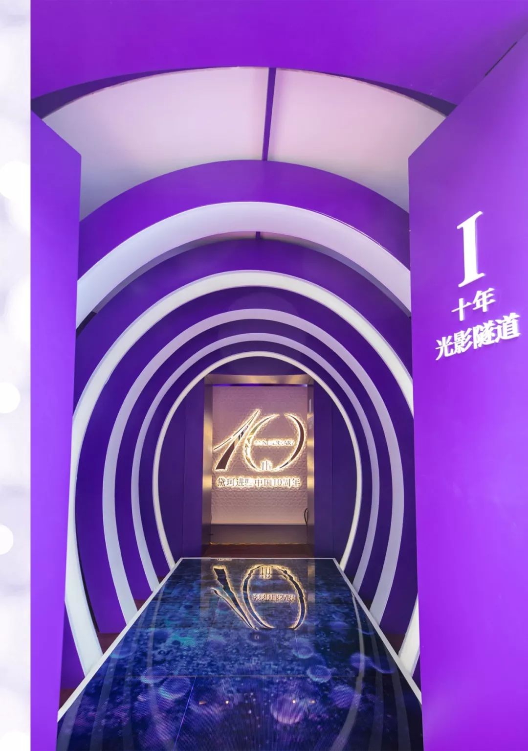 整個互動體驗展由四個展館彼此連接而成,分別是寓意品牌在中國所走過之歷程的「「十年光影隧道」、