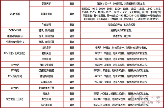 當(dāng)前位置 :善達首頁 > 活動自媒體 > 海內(nèi)外媒體通稿 > 電視廣播媒體資源
