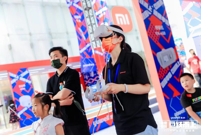 魚躍整場(chǎng)活動(dòng)前期主視覺(jué)延展到宣傳海報(bào)、周邊文創(chuàng)產(chǎn)品,到現(xiàn)場(chǎng)活動(dòng)打通,并以?shī)Z目的色彩為主,外場(chǎng)和內(nèi)場(chǎng)利用炫目的燈光特效和創(chuàng)意空間設(shè)計(jì)呈現(xiàn)舞美視效與美陳布置。