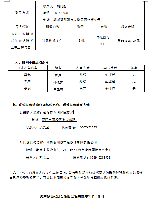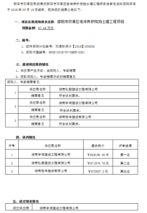 邵陽市雙清區(qū)老年養(yǎng)護院擋土墻工程 競爭性談判成交公告
