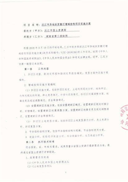 沅江市異地扶貧搬遷增減掛鉤項目實施方案合同公示