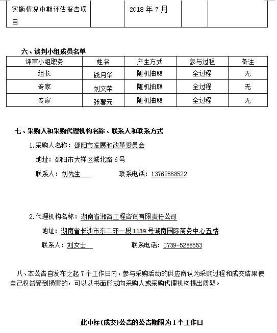 邵陽市“十三五”規(guī)劃綱要實施情況中期評估報告項目談判成交公告
