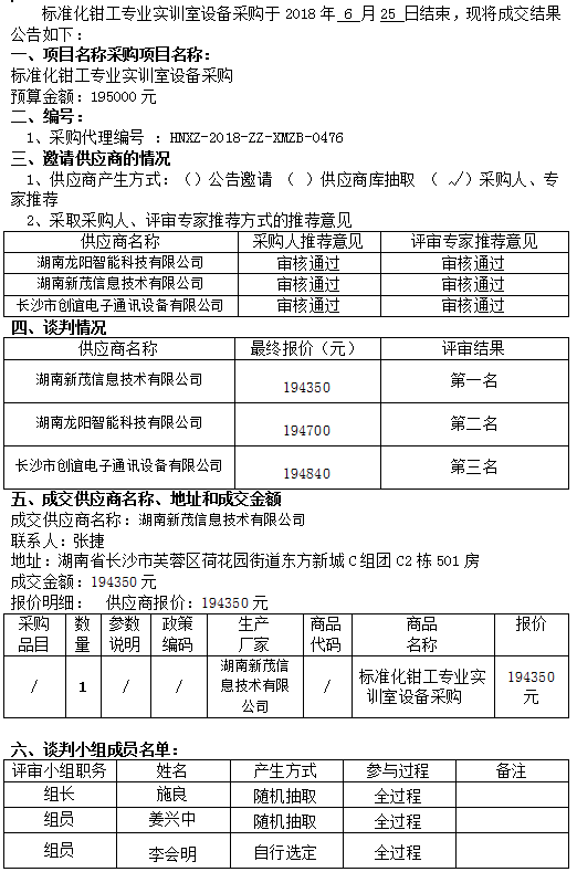 標準化鉗工專業(yè)實訓室設備采購競爭性談判成交公告