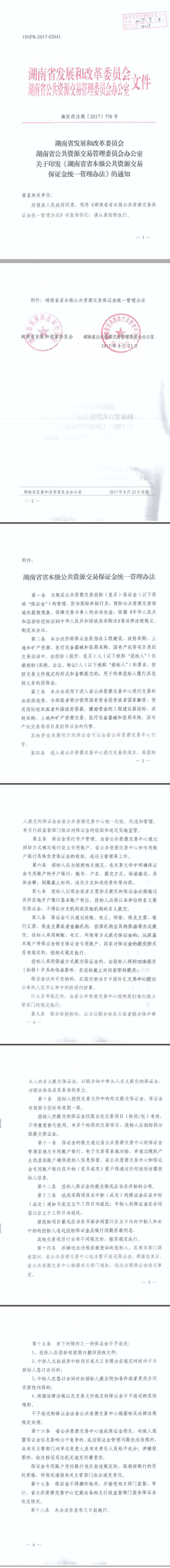 湖南省發(fā)展和改革委會員湖南省公共資源交易管理委員會辦公室關(guān)于印發(fā)《湖南省省本級公共資源交易保證金統(tǒng)一管理辦法》的通知湘發(fā)改法規(guī)[2017]776號