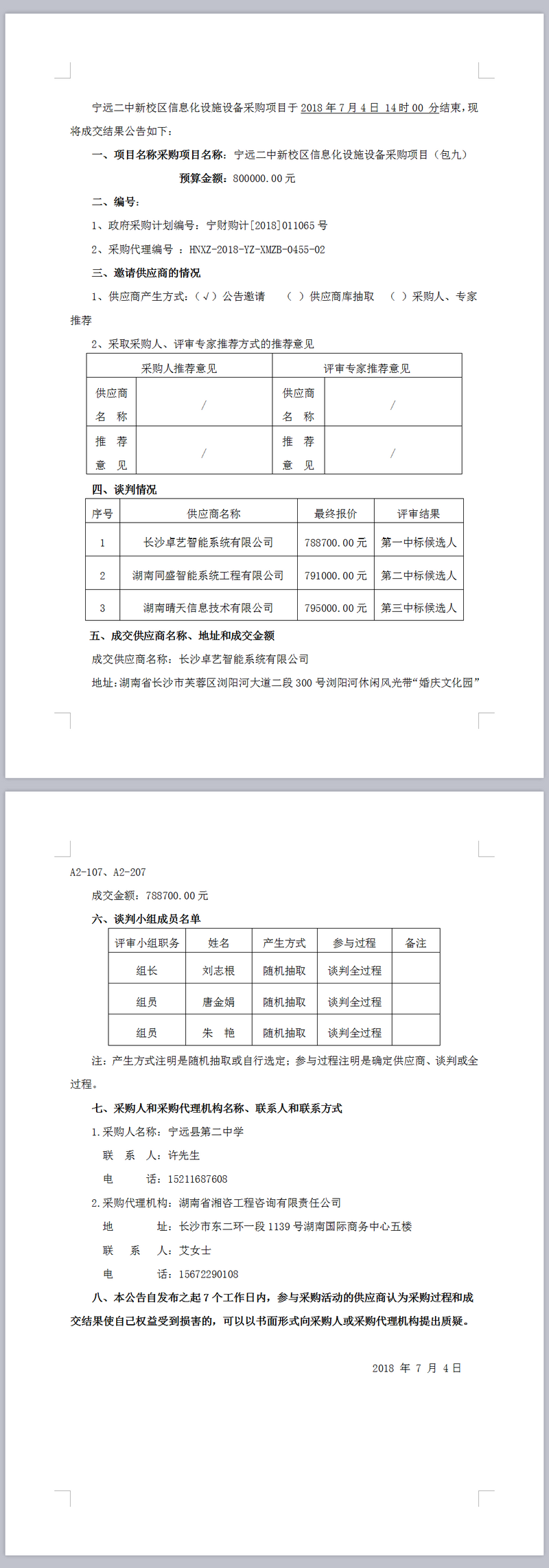寧遠二中新校區(qū)信息化設(shè)施設(shè)備采購項目(包九)競爭性談判成交結(jié)果公告