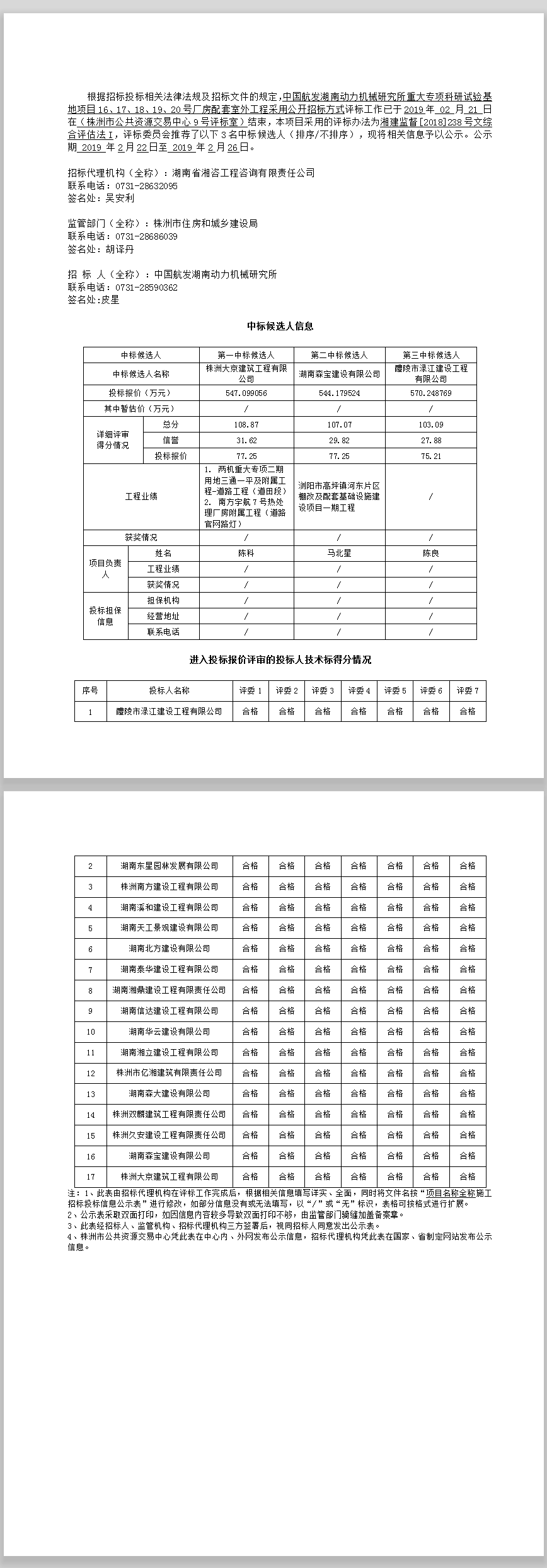 中國航發(fā)湖南動力機械研究所重大專項科研試驗基地項目16、17、18、19、20號廠房配套室外工程招標投標信息公示表