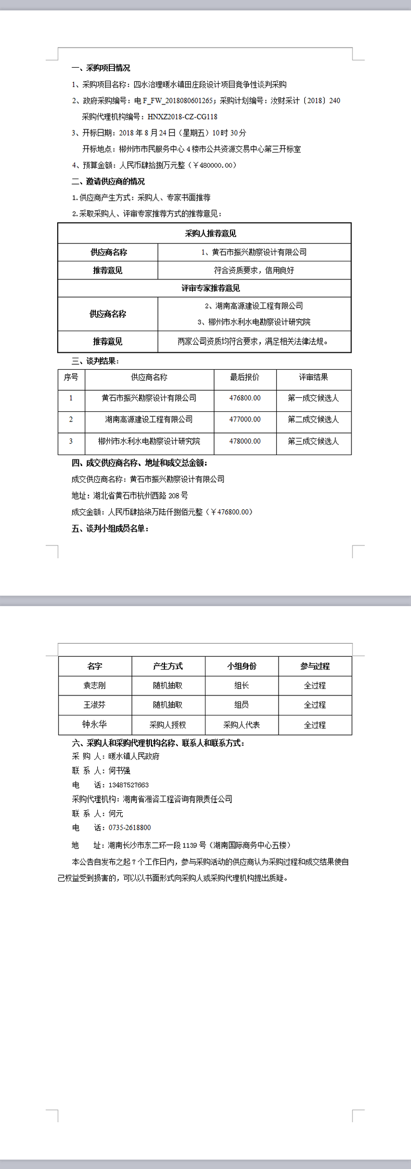 四水治理暖水鎮(zhèn)田莊段設(shè)計項目競爭性談判采購成交公告