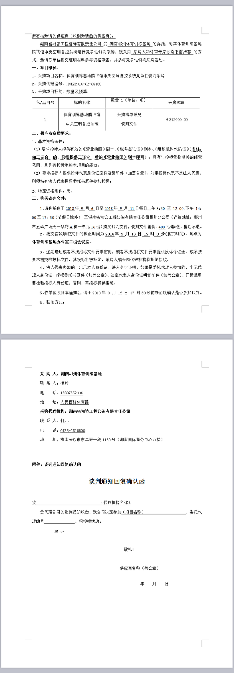 體育訓(xùn)練基地騰飛館中央空調(diào)自控系統(tǒng)競(jìng)爭(zhēng)性談判采購(gòu)談判公告