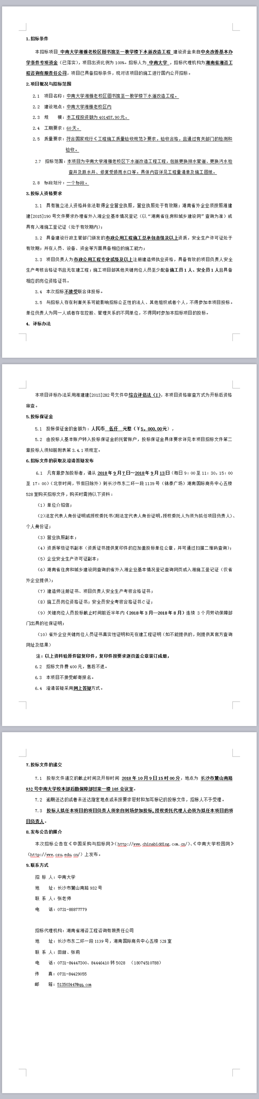 中南大學(xué)湘雅老校區(qū)圖書館至一教學(xué)樓下水道改造工程 招標公告