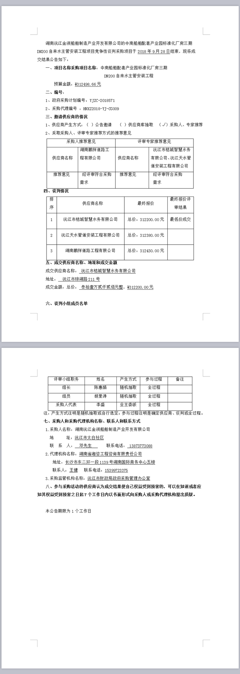 中南船舶配套產(chǎn)業(yè)園標準化廠房三期DN200自來水 主管安裝工程項目競爭性談判成交結果公告