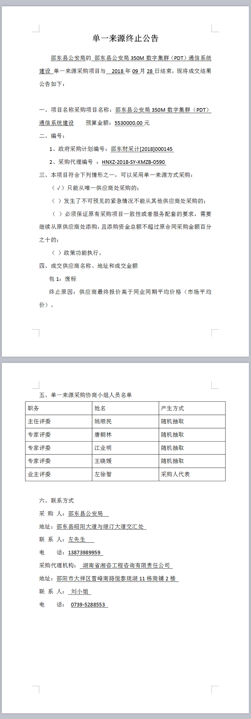 邵東縣公安局350M數(shù)字集群(PDT)通信系統(tǒng)建設(shè)單一來(lái)源終止公告