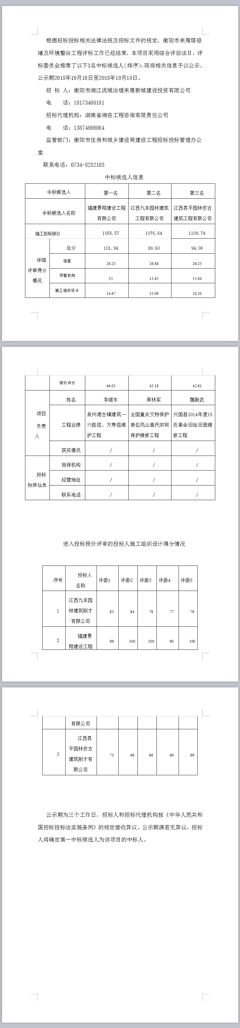 衡陽市來雁塔修繕及環(huán)境整治工程中標(biāo)候選人公示