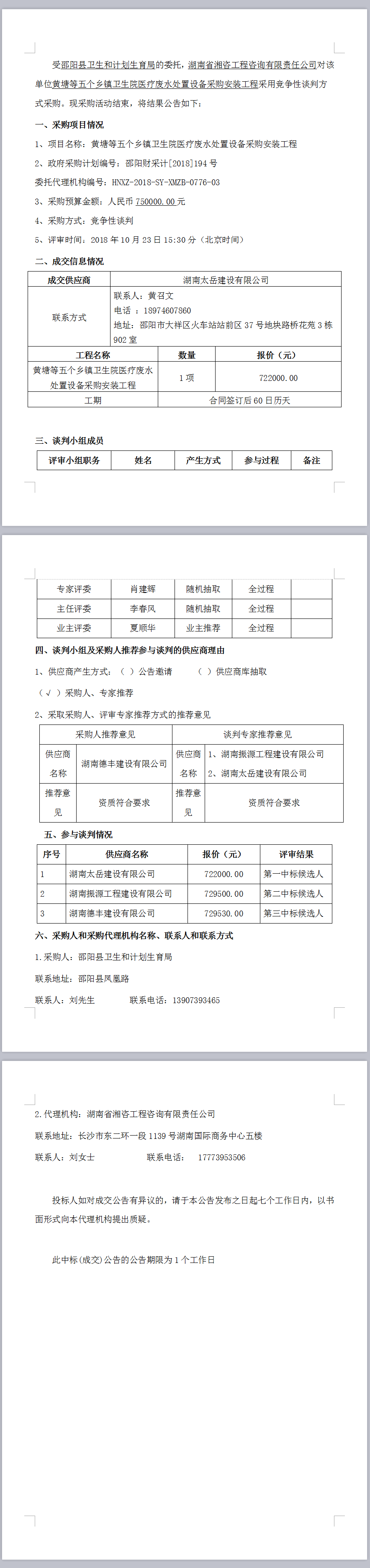 黃塘等五個(gè)鄉(xiāng)鎮(zhèn)衛(wèi)生院醫(yī)療廢水處置設(shè)備采購安裝工程談判成交公告