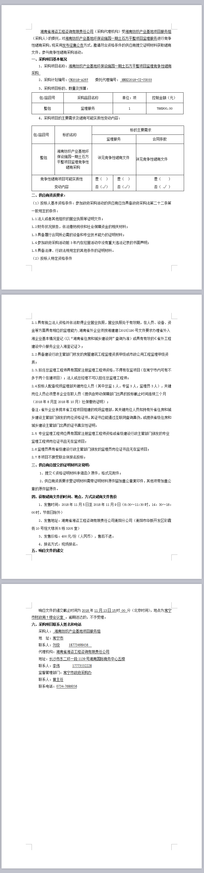 湘南紡織產(chǎn)業(yè)基地環(huán)保設施園一期土石方平整項目監(jiān)理競爭性磋商采購磋商邀請