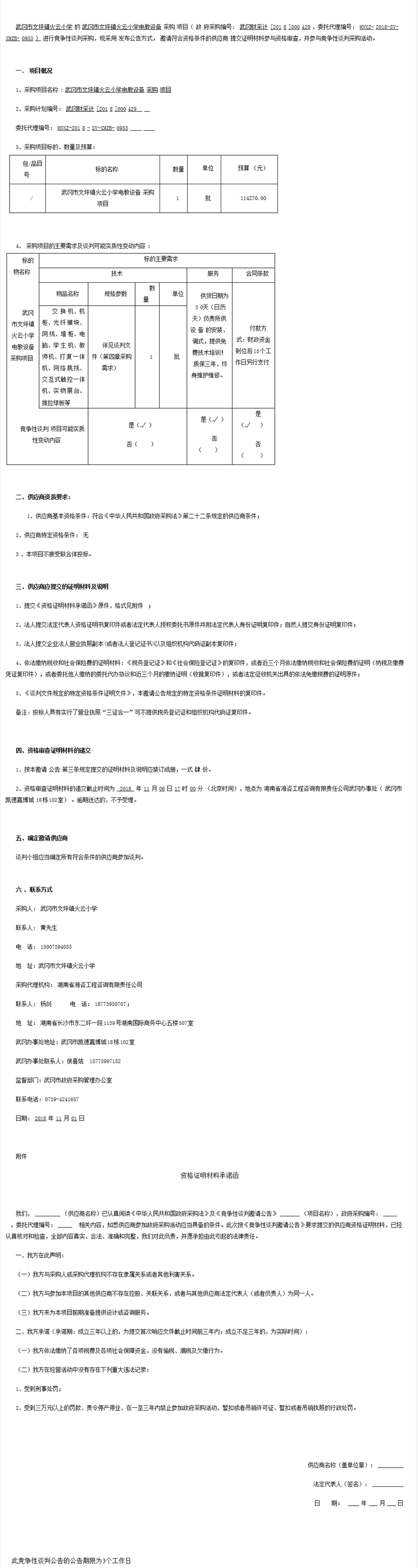 武岡市文坪鎮(zhèn)火云小學(xué)電教設(shè)備采購(gòu)項(xiàng)目談判公告