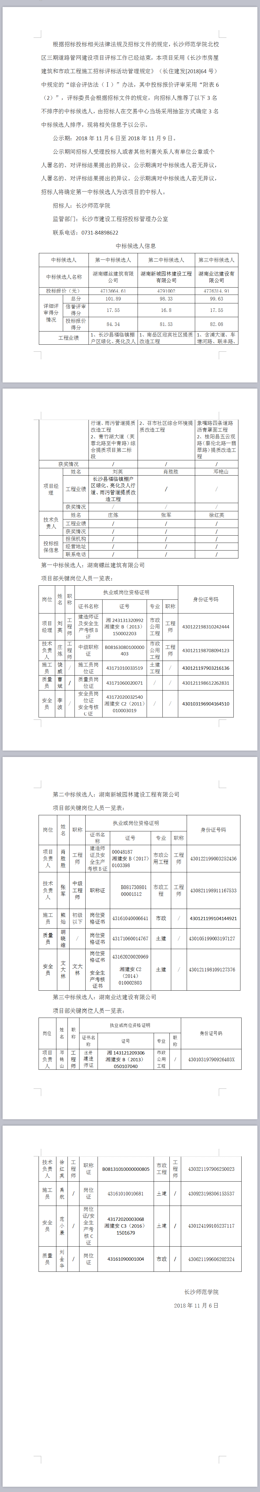 長沙師范學(xué)院北校區(qū)三期道路管網(wǎng)建設(shè)項目中標候選人公示