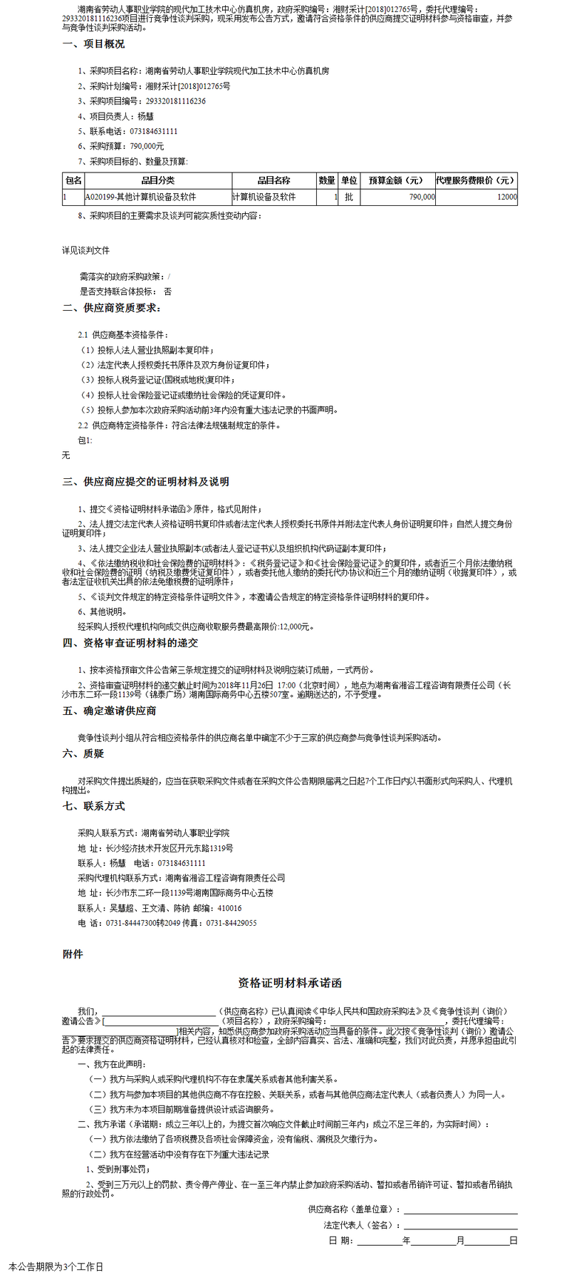 湖南省勞動(dòng)人事職業(yè)學(xué)院現(xiàn)代加工技術(shù)中心仿真機(jī)房項(xiàng)目競(jìng)爭(zhēng)性談判邀請(qǐng)公告