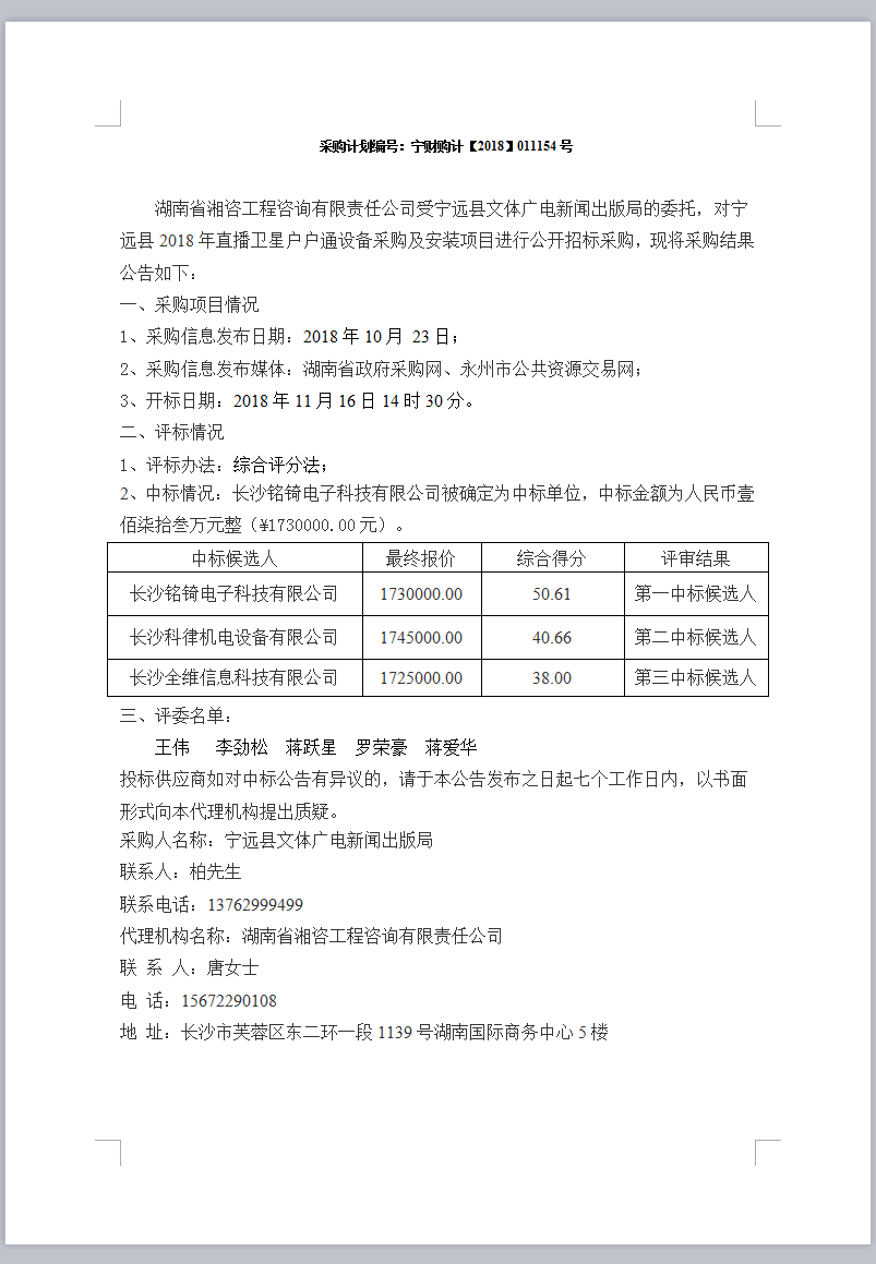 寧遠(yuǎn)縣2018年直播衛(wèi)星戶戶通設(shè)備采購及安裝項(xiàng)目中標(biāo)公告