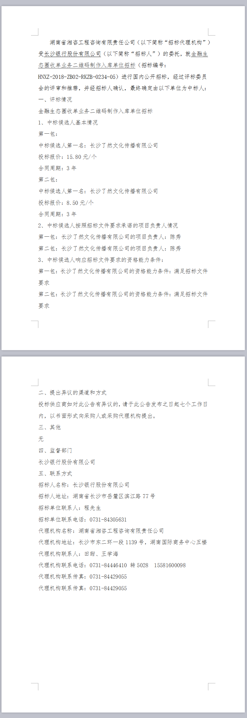 金融生態(tài)圈收單業(yè)務(wù)二維碼制作入庫單位招標中標結(jié)果公告