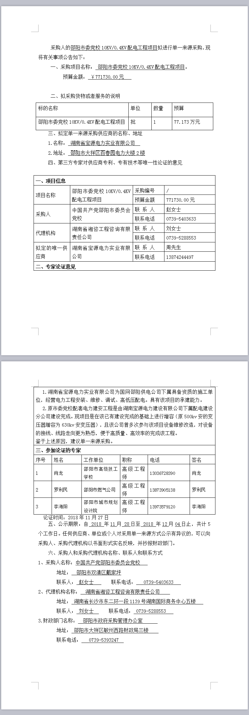 邵陽(yáng)市委黨校10KV/0.4KV配電工程項(xiàng)目單一來(lái)源論證公示