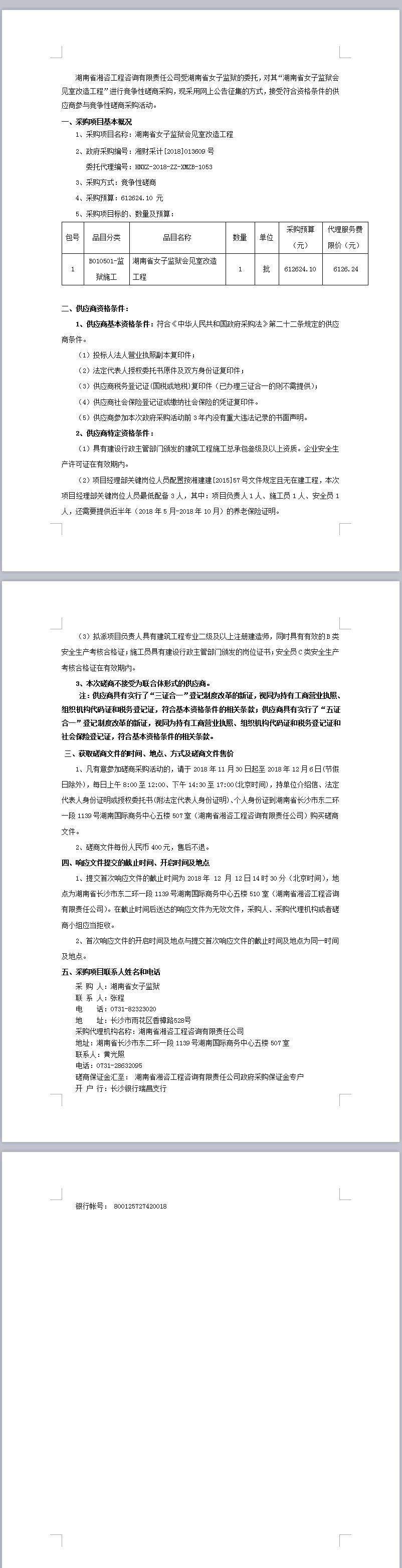 湖南省女子監(jiān)獄會(huì)見(jiàn)室改造工程磋商邀請(qǐng)