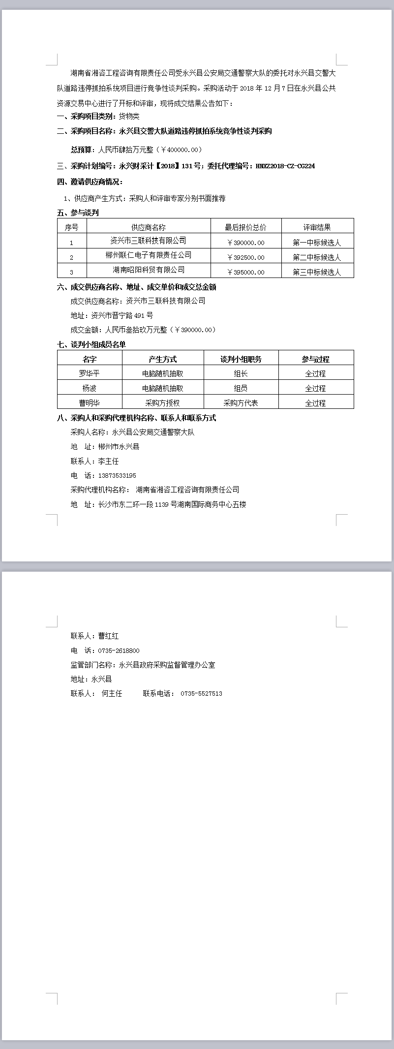 永興縣交警大隊(duì)道路違停抓拍系統(tǒng)競(jìng)爭(zhēng)性談判采購(gòu)成交公告
