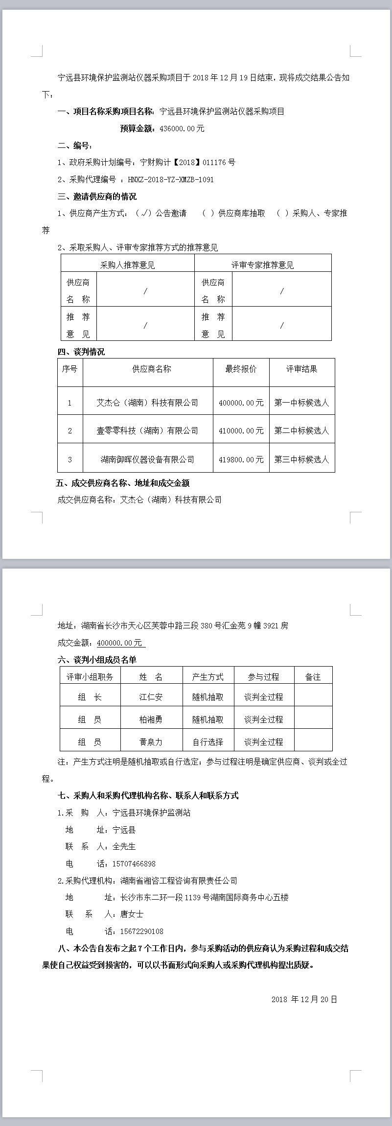 寧遠(yuǎn)縣環(huán)境保護(hù)監(jiān)測(cè)站儀器采購(gòu)項(xiàng)目 競(jìng)爭(zhēng)性談判成交結(jié)果公告