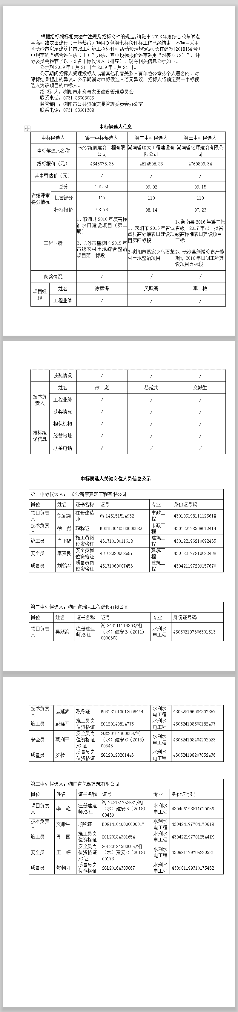 瀏陽(yáng)市2018年度綜合改革試點(diǎn)縣高標(biāo)準(zhǔn)農(nóng)田建設(shè)(土地整治)項(xiàng)目D包第七標(biāo)段 中標(biāo)候選人公示