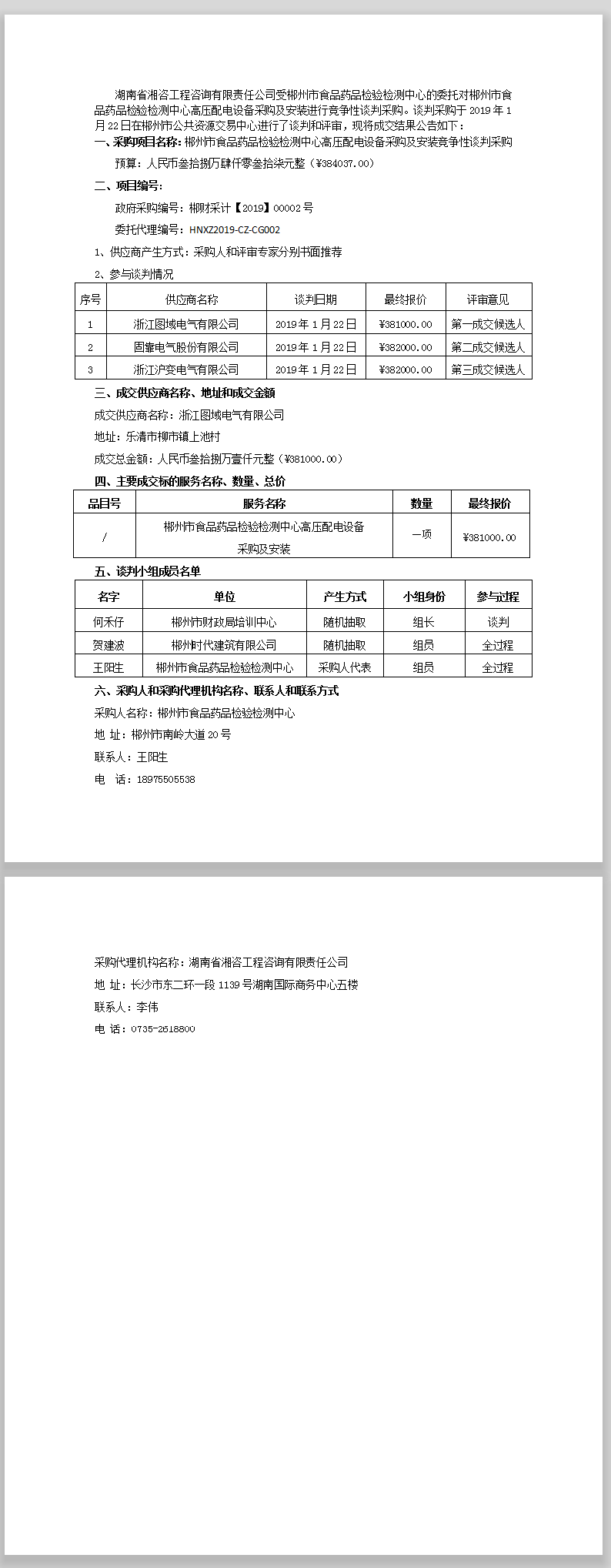 郴州市食品藥品檢驗(yàn)檢測中心高壓配電設(shè)備采購及安裝 競爭性談判采購成交公告