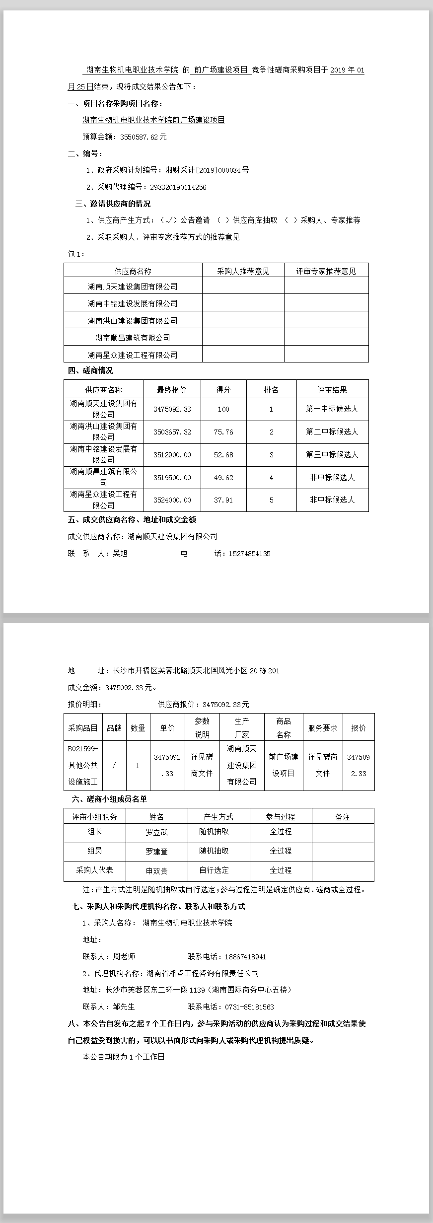 湖南生物機(jī)電職業(yè)技術(shù)學(xué)院前廣場(chǎng)建設(shè)項(xiàng)目競(jìng)爭(zhēng)性磋商成交公告