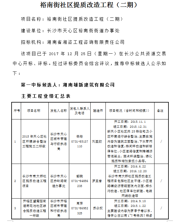 裕南街社區(qū)提質(zhì)改造工程(二期)中標(biāo)候選人公示