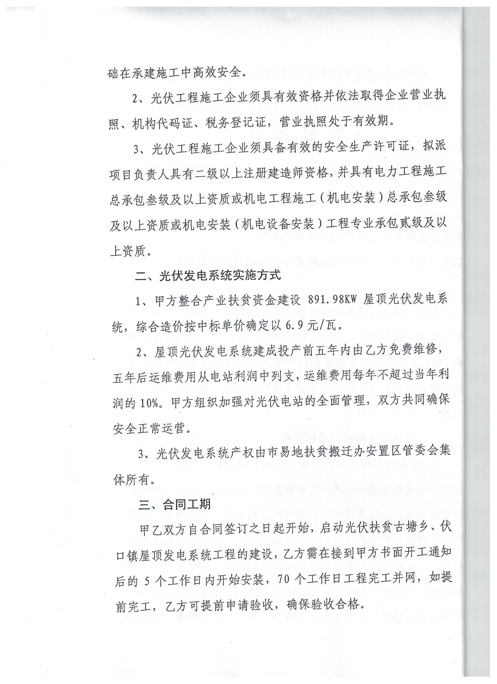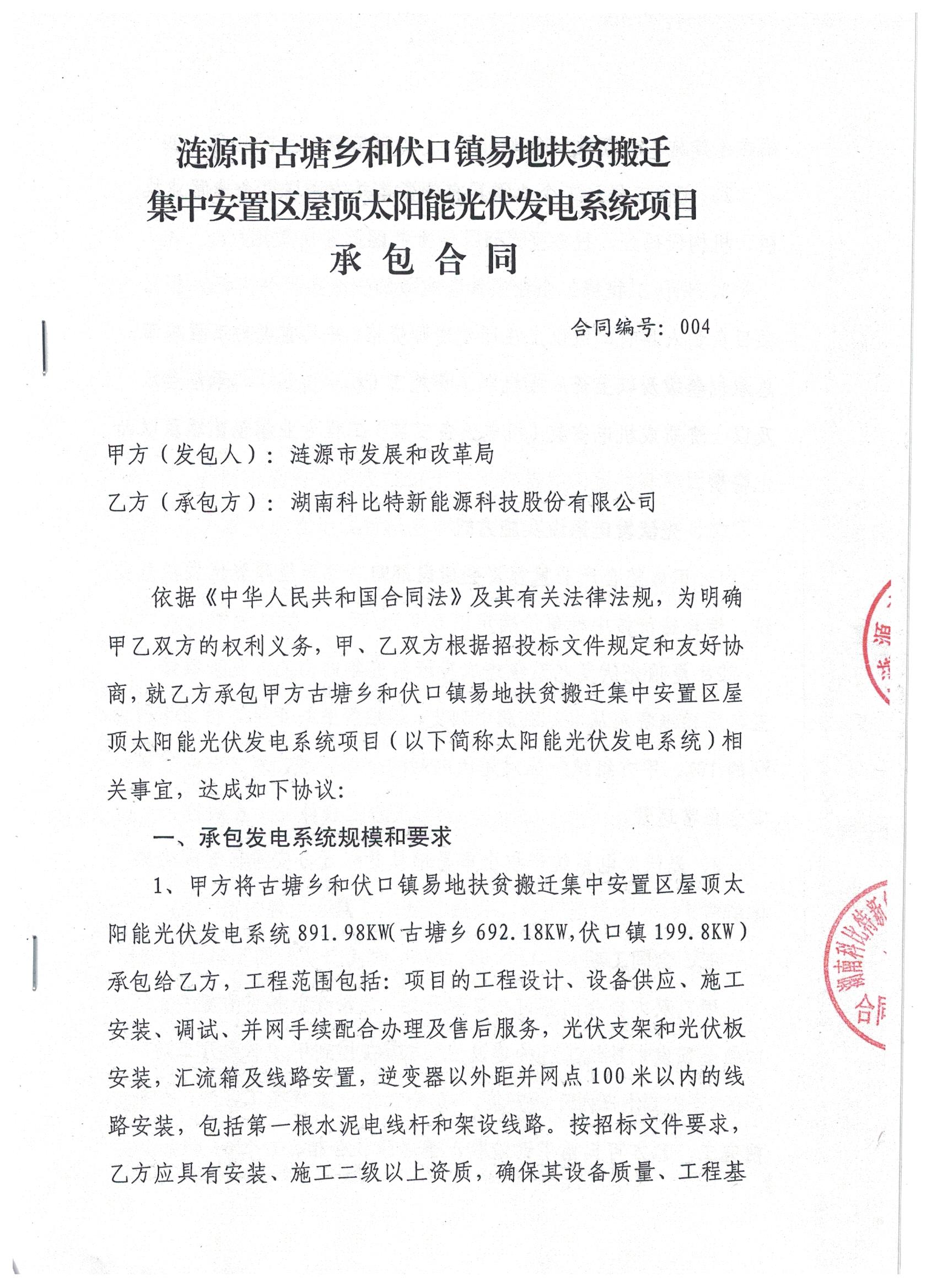 漣源市古塘鄉(xiāng)和伏口鎮(zhèn)易地扶貧搬遷集中安置區(qū)屋頂太陽能光伏發(fā)電系統(tǒng)項目承包合同公示