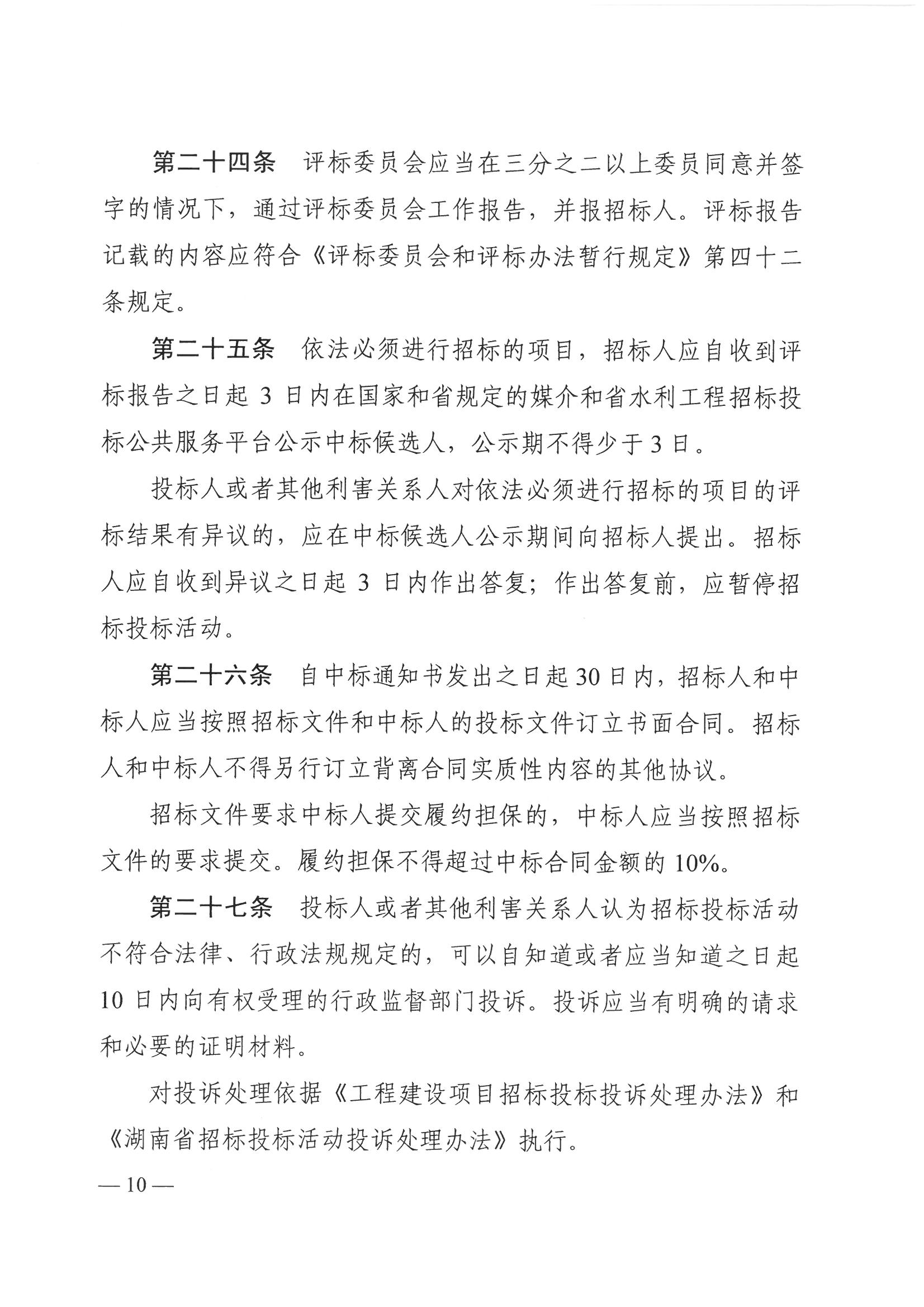 關于印發(fā)《湖南省水利工程建設項目招標投標管理實施辦法》的通知 湘水辦【2017】113號