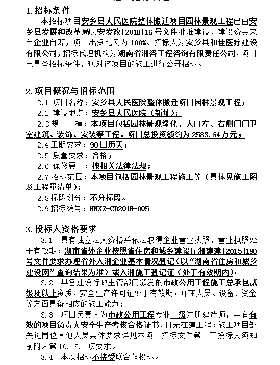 安鄉(xiāng)縣人民醫(yī)院整體搬遷項(xiàng)目園林景觀工程 施工招標(biāo)公告