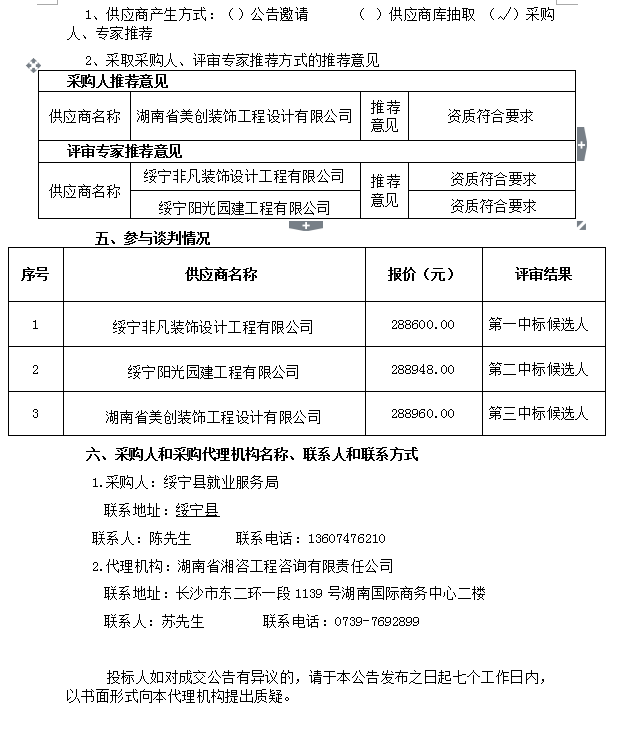 綏寧縣就業(yè)扶貧服務(wù)中心裝修工程談判成交公告